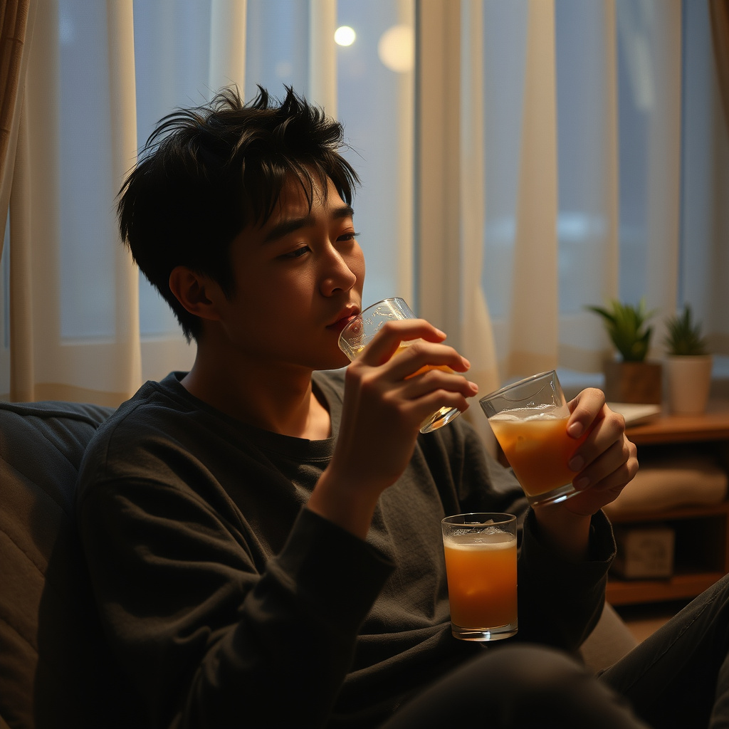 寝不足と必死さが混ざった、でもなんかちょっと誇らしい顔。